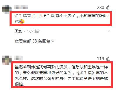 "《金手指》不值这个价啊,男主角应该给黄子华,或者林保怡,他们的演技好太多了 "