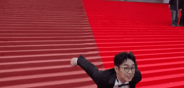 同样陪跑的还有内地演员大鹏,不过对他来说,提名即肯定,开心到在红毯上跳起来了。
