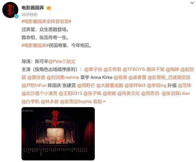 但官宣中的一句话无疑更是让人关注,就是" 按角色出场顺序排列 ",也就是影片中谁先出场谁就排在前面,没有所谓的领衔主演、特别演出、友情出演之类的词汇,这在电影的官宣中确实是少有的。