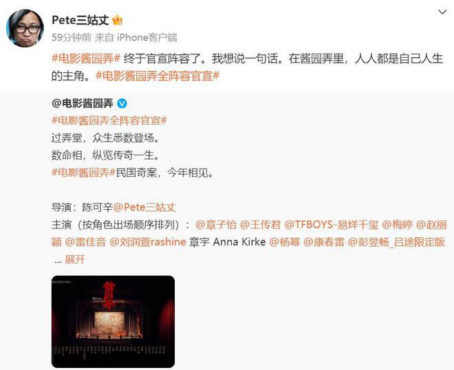 所以为了回避番位之争,最终片方就以这样的方式官宣了阵容。而且导演也是发文特别说道" 在酱园弄里,人人都是自己人生的主角。"