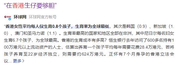 尤其在香港地区,已降至全球最低:平均每个女性生育 0.8 个孩子。