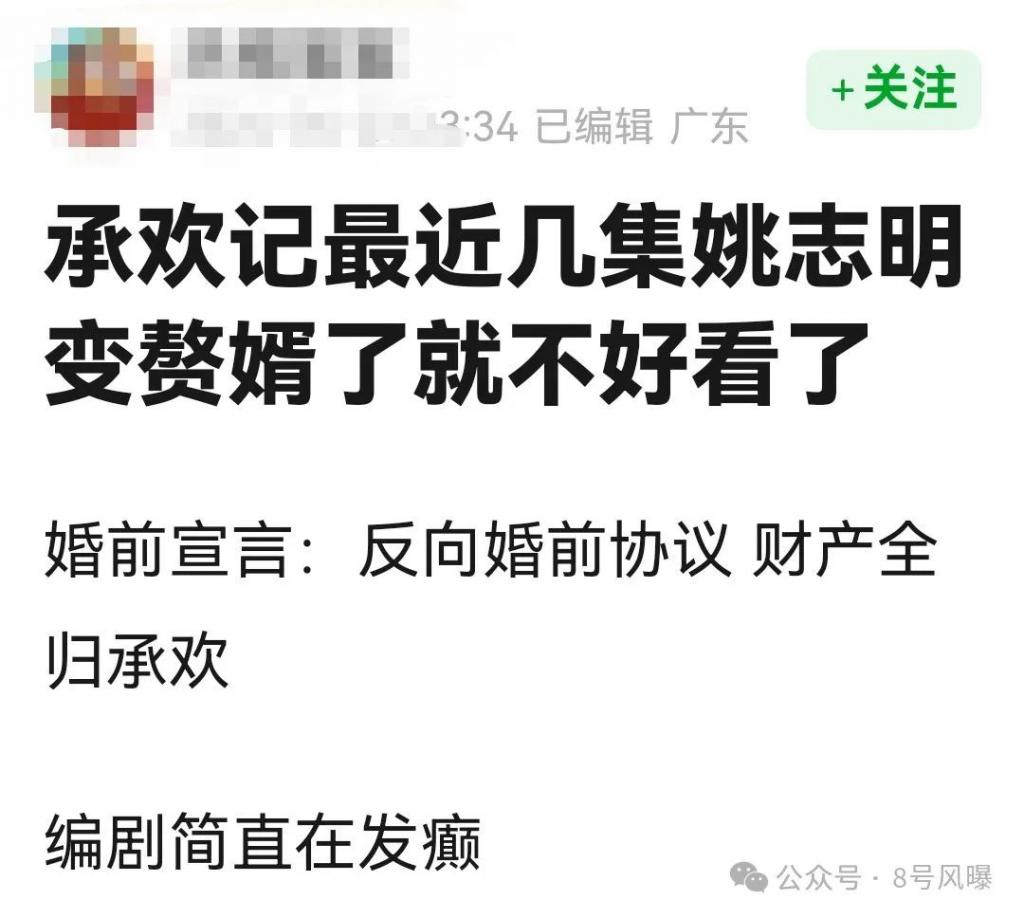 网友表示霸总变赘婿,爱上之前是运筹帷幄的职场精英,爱上之后直接 " 财产全归承欢 ",编剧简直是在 " 发癫 "。