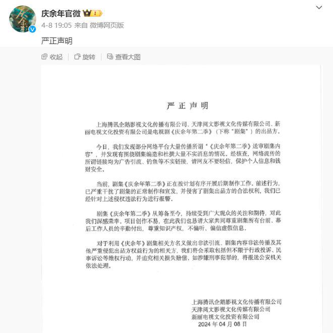 不过,这一消息很快被《庆余年》官微辟谣。随后,官微还发布了《庆余年 2》预约破 1300 万的好消息。