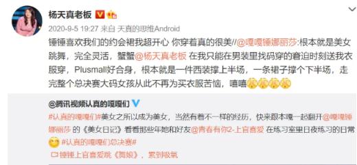 当然,即便 " 清醒 " 是人设,也完全不影响杨天真前进的步伐,因为清醒的背后是思路清晰见招拆招的专业,更是知道自己想要什么并且一往无前的决心和毅力。