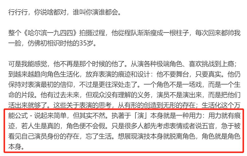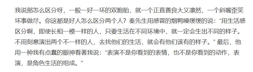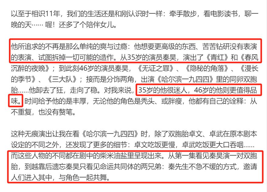 在她的文字里,秦昊就是这个世界上最热爱演艺事业、对待每个角色都无比用心的敬业好演员;
