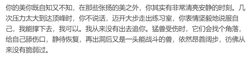在她身上,我们看到从小在逆境中漂浮的人可以成长出的样子,也看到一种叫 " 温柔 " 的强大。