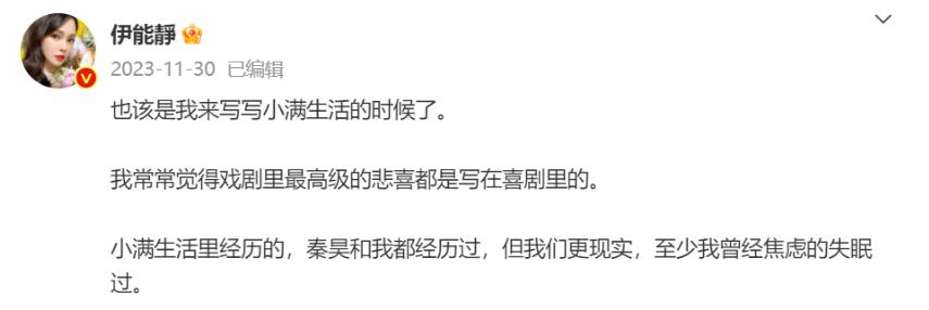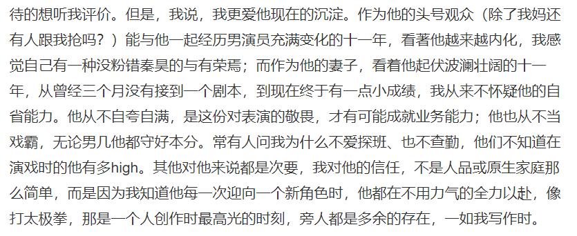 你分明清楚她的这段接近 2000 字的小作文,是在宣传这部剧,亦是在回应外界的一些声音,却又很难不被她文字中对秦昊的爱意和崇拜吸引着看下去。