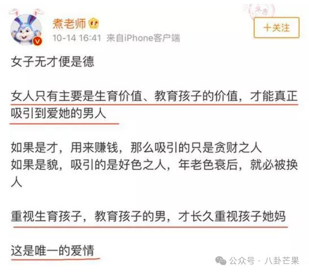 徐波在网上出名,主要是因为他广而告之的【疯狂繁殖行为】和各种极端的【贬低女性价值】言论,是很多仇女份子的偶像。