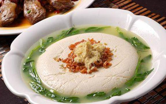比如,炖了 4 个小时的童子鸡汤;提前泡足 5 天的酸辣海参;还有看似简单的炖豆腐,其实是把肉、鱼肉、豆腐和肥膘剁碎,过筛成细茸,在重塑成豆腐型。