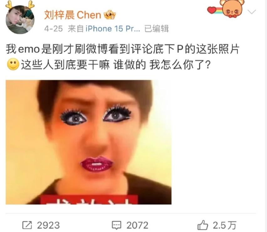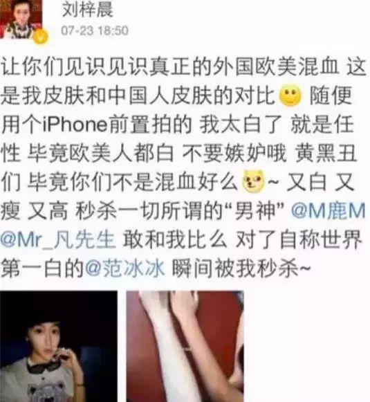 随着事情逐渐发酵,刘梓晨的微博账号被封了,但转头又开了小号,继续活跃。甚至因为太过于气人,还被黑粉拉到草丛中胖揍了一顿。
