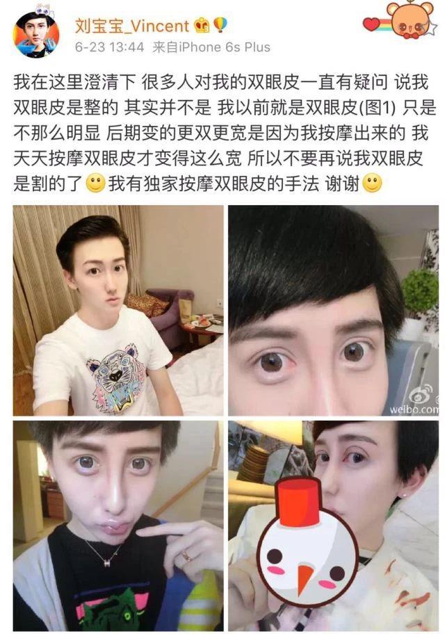 说自己的双眼皮是天天按摩,才变这么宽的。