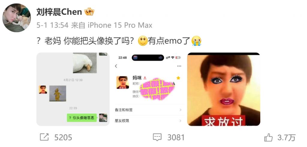 还学会了自黑,连亲妈都把他的表情包当成了微信头像。