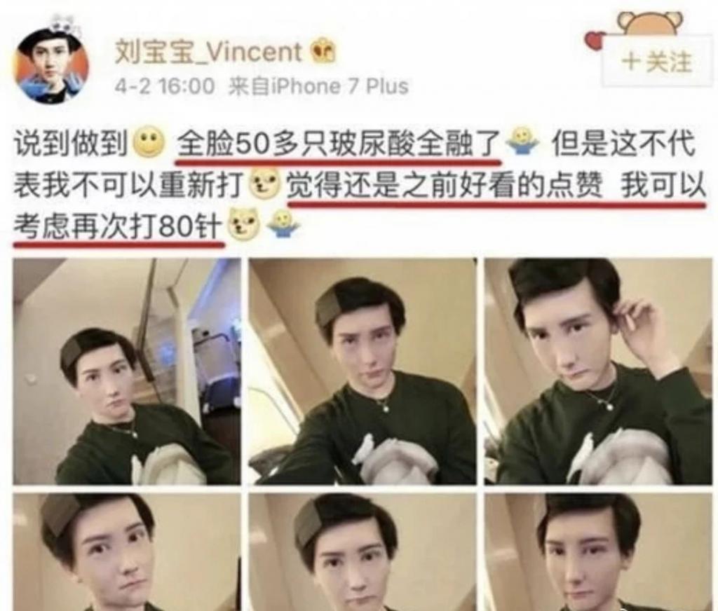 没话题也要制造话题,比如打赌失败,把全脸 50 多支玻尿酸全融了。不过这都是小事,因为他还可以再打进去 80 多针……