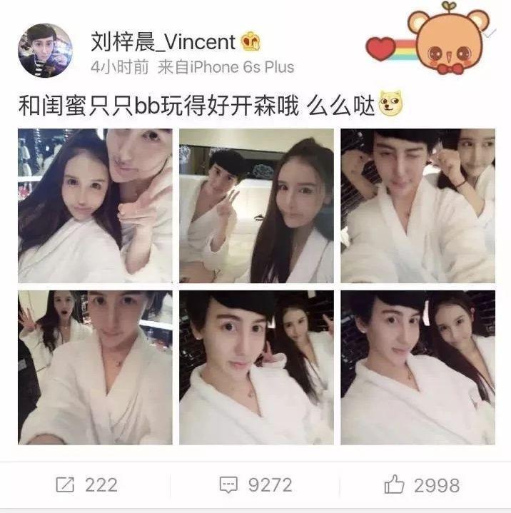 2018 年 4 月份,刘梓晨贴出和 " 闺蜜 " 的亲密合照。
