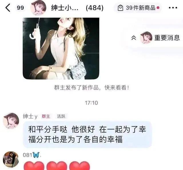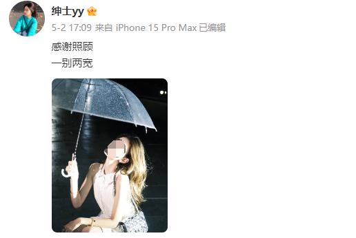 5 月 2 日,小羽在社交媒体上发布一张雨中撑伞的图片,并配文 " 感谢照顾,一别两宽 ",算是给这段本没有结果的恋情画上一个句号。
