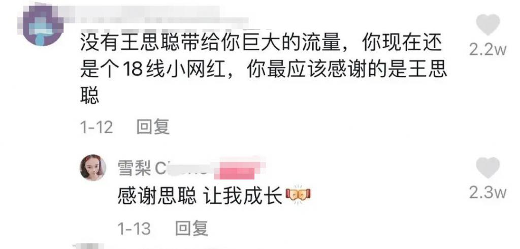 因偷税漏税被封杀的头部主播雪梨(真名朱宸慧)也是王思聪众前女友之一,她算得上是将王思聪流量实现 " 价值最大化 " 的一位。