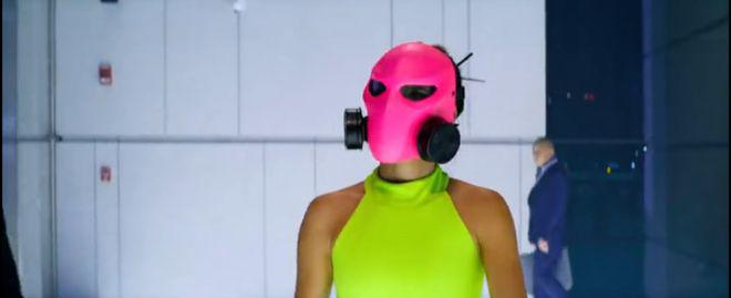 整部电影动作场面非常多,而且导演对色彩有种极致的偏好,大量高饱和度色彩出现在电影之中,吸睛感爆棚。纯绿跑车、鲜亮白衣、正蓝包裙、荧光绿长裙、玫红面罩等,导演将色彩的出挑性在电影中运用到了极致。