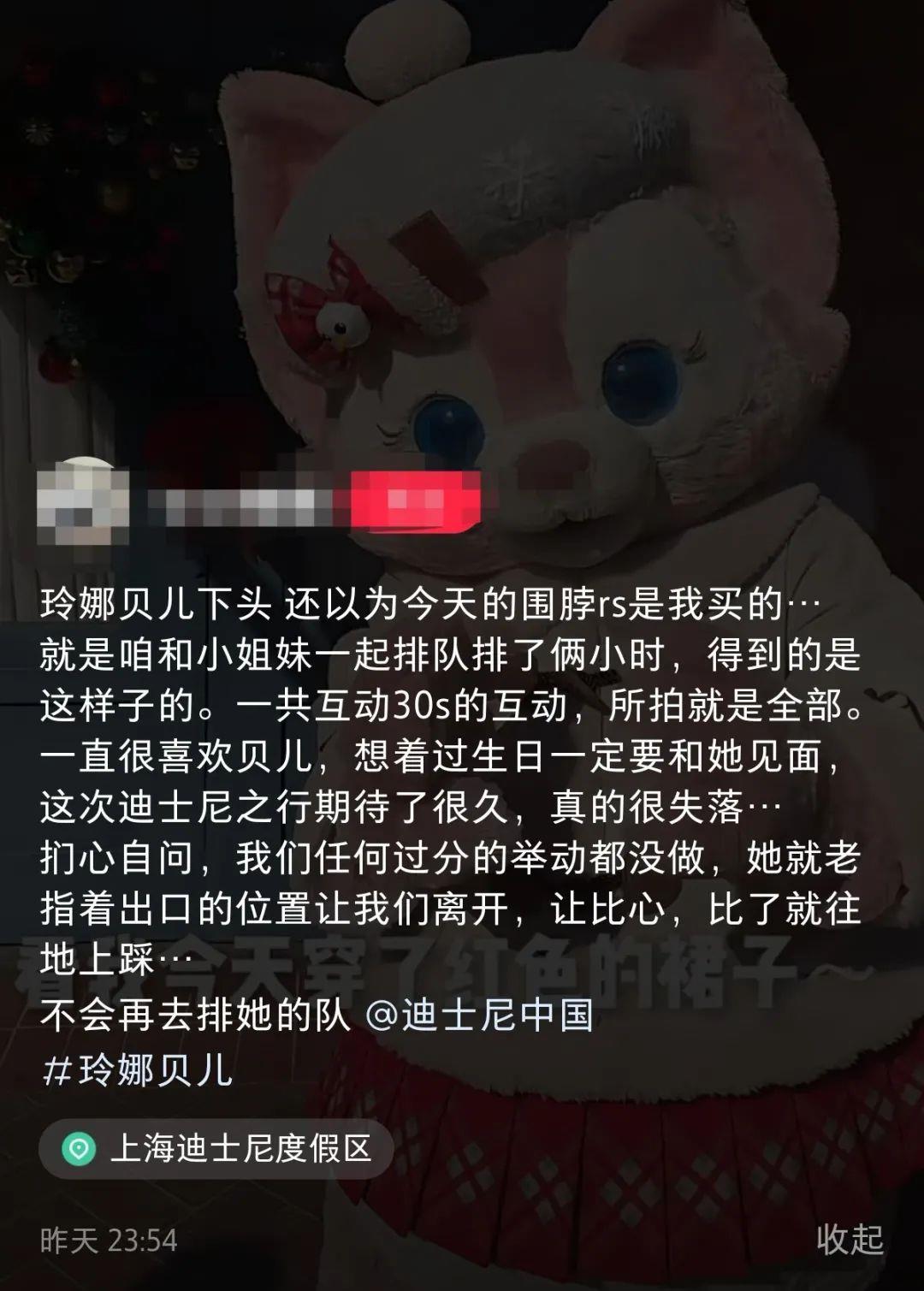 昨天深夜,一网友PO视频爆料自己过生日,在上海迪士尼度假区排了近2小时的队见到玲娜贝儿,不料却遭敷衍对待。