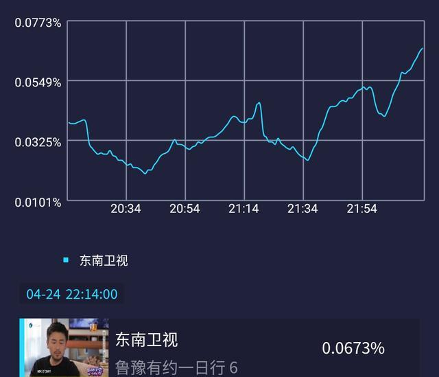 不过,在所有电视台节目收视率呈现下滑的大趋势背景之下,东南卫视的《鲁豫有约一日行》却呈现了逆势上扬的态势。根据酷云实时和收视率数据图谱来看,这档综艺节目在开播的时候,收视率一度不足0.03%(与一周前的0.05%还要尴尬)。这个开播起点,也基本上符合了电视媒体平台当日收视成绩均整体下滑的大背景。