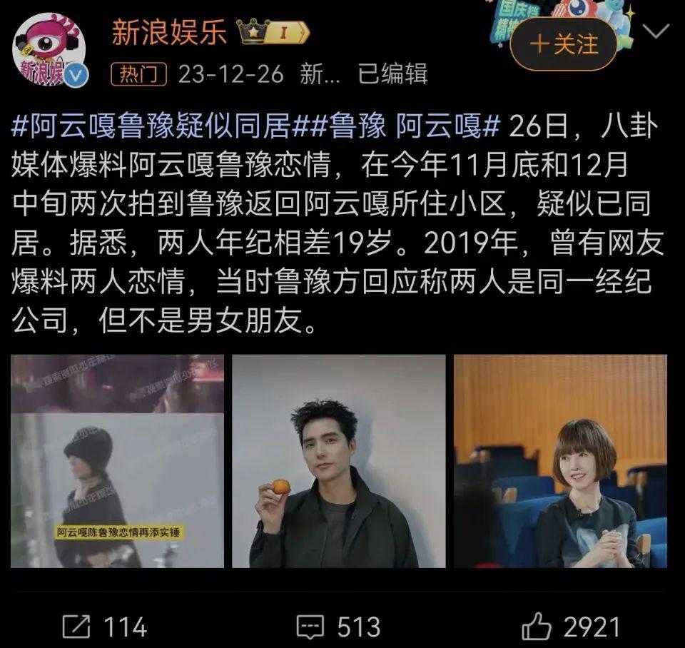 这里再插播一个八卦,去年年底有媒体拍到阿云嘎和鲁豫疑似同居。(对,就是《鲁豫有约》里那个鲁豫)