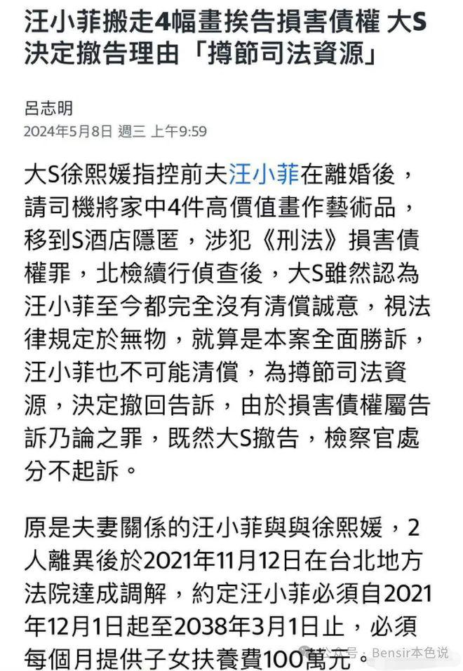 不知道汪小菲如何神不知鬼不觉地避开了大 S 让司机将四幅画运到了 S Hotel,反正这招一出,大 S 急了,她当即提告,可是这次法庭没有支持她的主张。