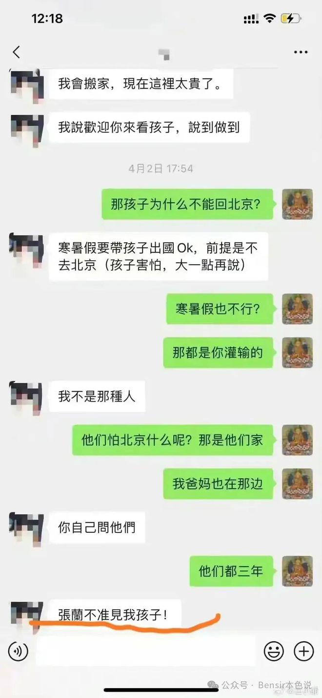 这段话也被打脸了,她明面上说的冠冕堂皇,私下和汪小菲的聊天记录里明确表示 " 张兰不准见我孩子 "。