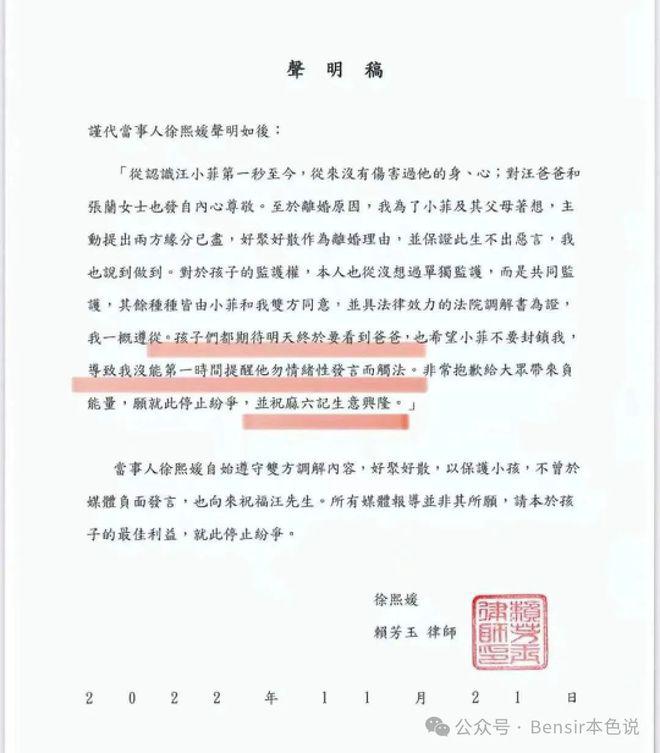 汪小菲当时有一大把出轨照掌握在大 S 手里,对大 S 愿意维持体面感恩戴德,而大 S 也承诺," 不会再婚会好好抚养孩子长大 "。