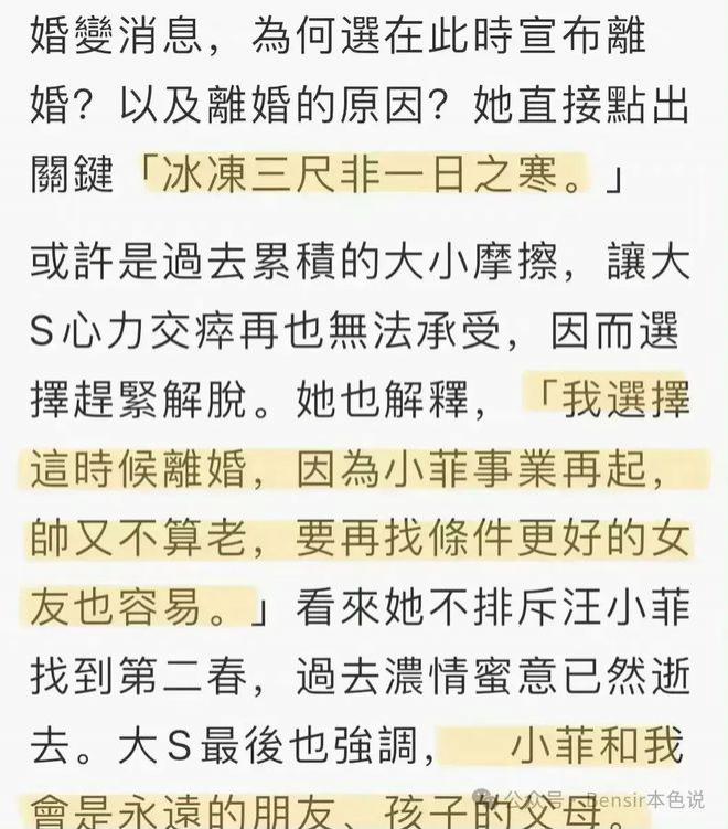 " 冰冻三尺非一日之寒,小菲事业再起帅又不算老,要再找条件更好的女友也容易。