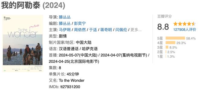 电视剧《我的阿勒泰》完美收官,豆瓣评分 8.8。很多网友说,如果李娟她妈不谈恋爱,这个分还能再高点。