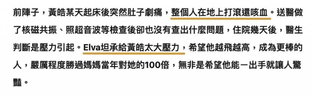 但加拿大悠闲长大的黄皓完全吃不消这等强度的训练,一度吐血送医,疑似精神压力过大。