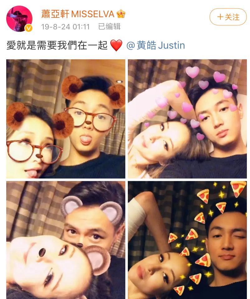 2019 年 8 月萧亚轩在社交平台公布恋情,黄皓在她人生低潮时出现,长期陪伴和照顾她,彼此之间虽然相差 16 岁但当时看上去非常恩爱。