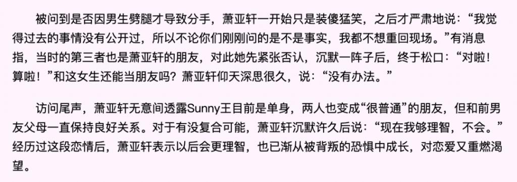 鉴于萧亚轩的前任们都以相似理由亮相,这一次的新恋情暂且算是预备役啦 ~