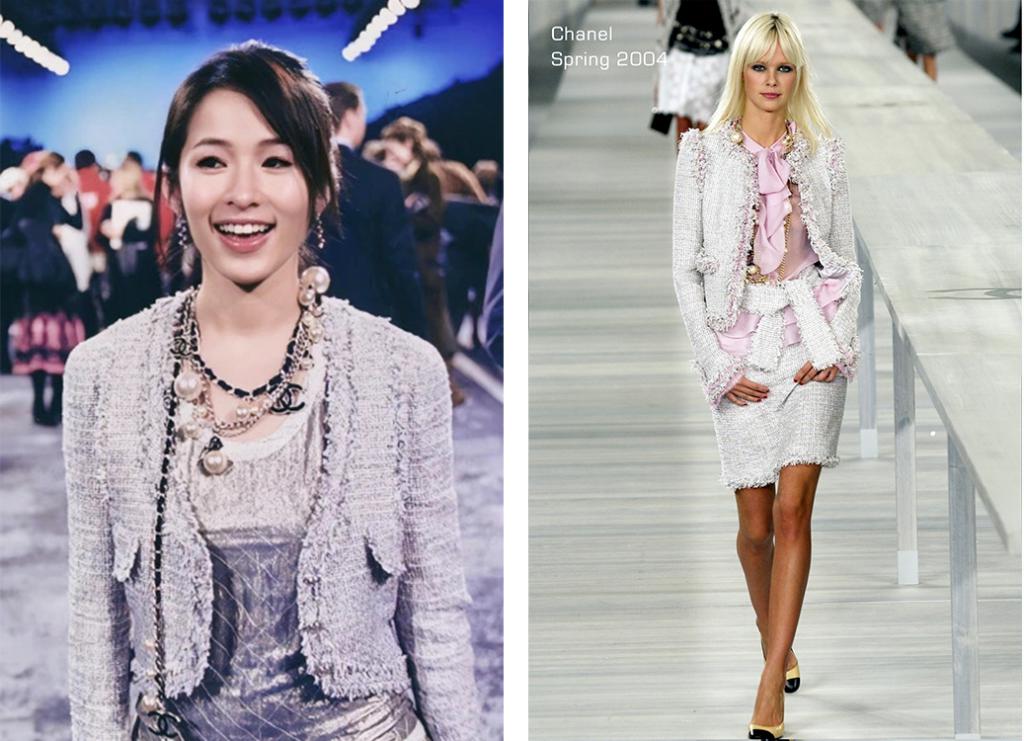 而且她算是最早一批去巴黎时装周看秀的亚洲艺人了,甚至第一次亮相就是 Chanel。