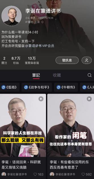 在小红书,李诞有一个专门推荐书的账号,叫做 @李诞在靠谱讲书。
