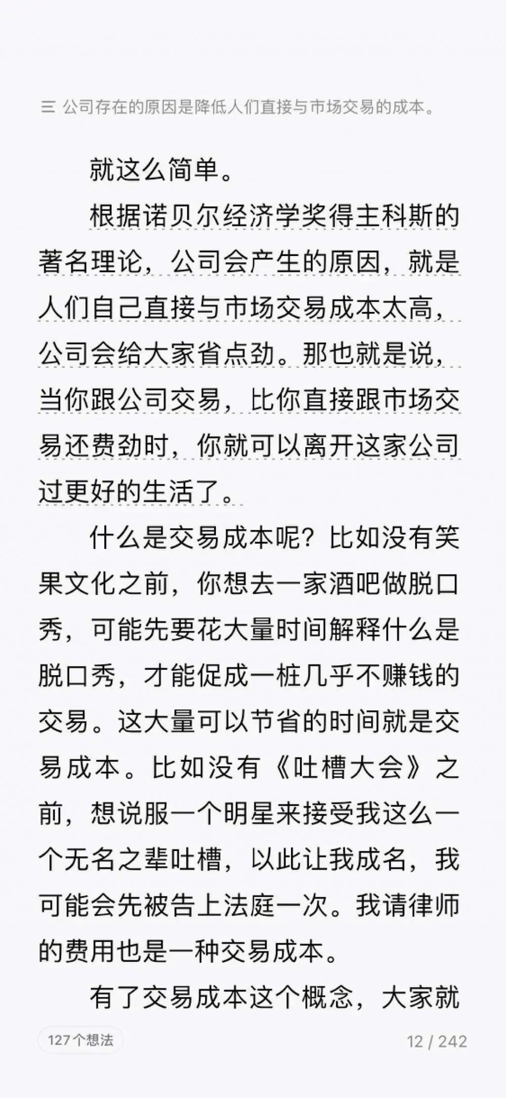 在《李诞脱口秀工作手册》里,开篇第一章他就引用了诺贝尔经济学奖得主科斯的理论,解释工作的本质。