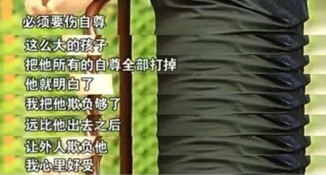 " 这么大的孩子,把他所有的自尊全部打掉,他就明白了,我把他欺负够了,远比他出去之后,让外人欺负他我心里好受。"
