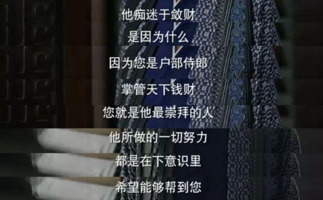 " 他痴迷于敛财,是因为什么?因为您是户部侍郎,掌管天下钱财,他所做的一切努力,都是下意识里希望能够帮到您。"