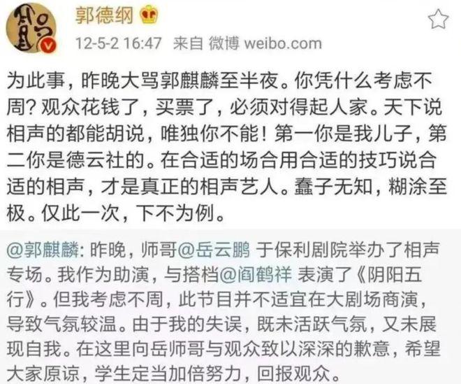 有一次,因为演出效果不好,老郭甚至在微博上,公开批评道: