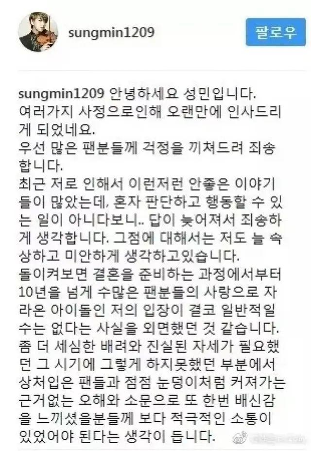 到了 9 月,时隔两年回归的宣传期间,晟敏又突然宣布和音乐剧演员金思恩结婚。