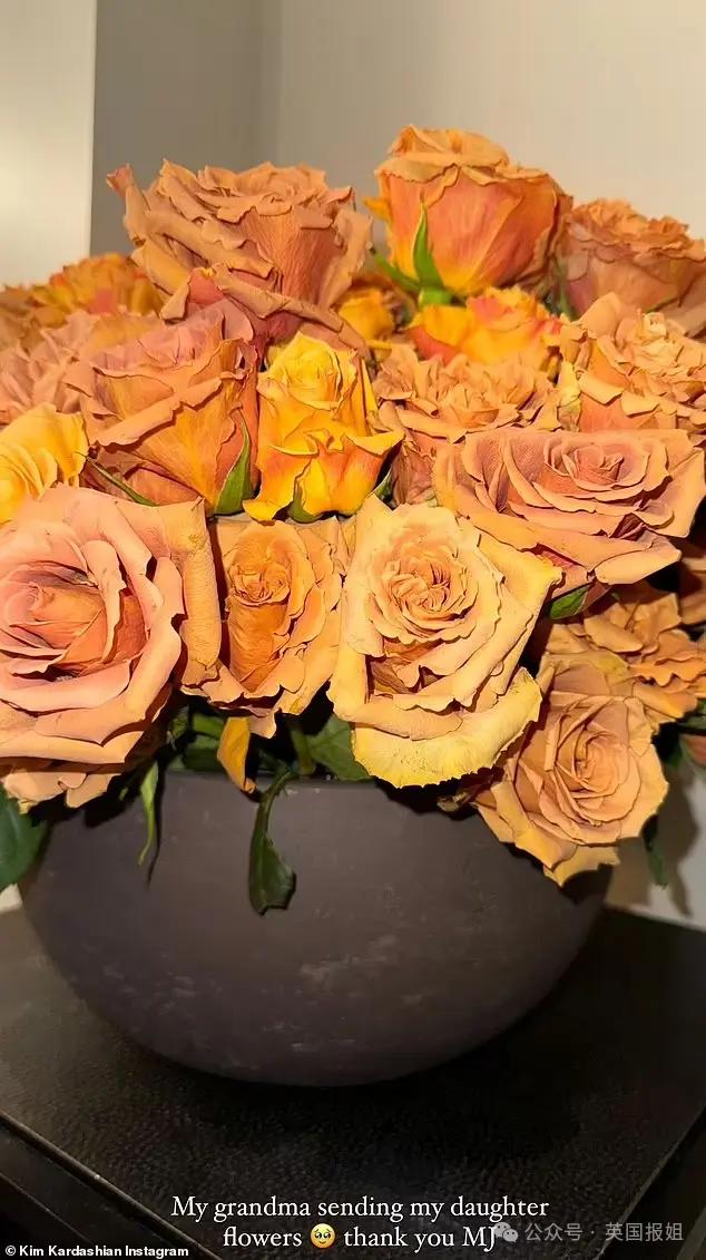 卡戴珊家族也来了不少人,太后克里斯詹娜、大姐考特尼与丈夫到场,三姐科勒也在,金姐的祖母 MJ 还送来了鲜花。