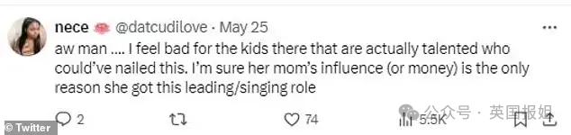 我确信她妈妈的名气(或钱)是她获得这个角色的唯一原因。"