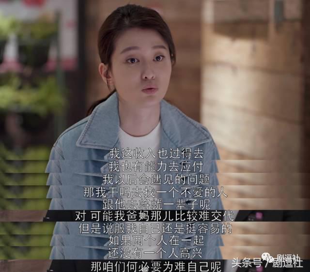 我的收入过得去,也有能力去应付我以后会遇见的问题,那我为什么去找一个不爱的人跟他将就一辈子呢?