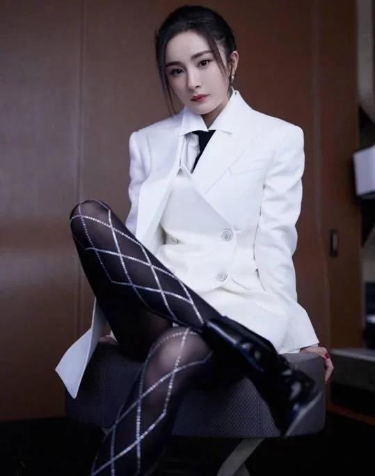 这一套是杨幂最近出席活动的一套穿搭,白色的西装搭配白银网格黑丝,气场简直秒杀全场!这一套也很时候白领们,拥有很飒的气场同时又非常的时尚!大家如果想拍酷酷的时尚写真这一套穿搭一定要学起来!