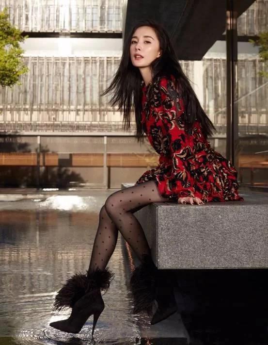 小tips:裙装+黑丝+高跟毛靴!这一套是大幂幂在给ELLE拍摄杂志的一套黑丝穿搭,相比上一套这一套更加的成熟有魅力。女人味十足~在沉闷的秋冬日用黑红色彩来装束自己是一个很不错的选择!成熟风的姐妹们可以模仿这一套!冬日里大胆的红色和黑丝必定让你成为马路上最耀眼的那一个!鞋子的选择也非常的关键,大幂幂选择的是带毛的高跟皮靴,不仅能让自己的身高增加几厘米~更加带有气场!