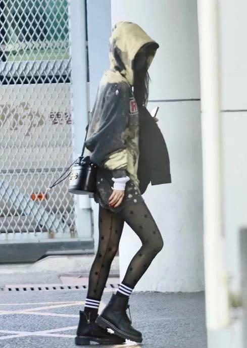 小tips:卫衣+黑丝+马丁靴!这套穿搭可谓是经典的黑丝穿搭,也是很好模仿的一套,上身选取了宽松版的卫衣,下身搭配了有星星点缀的黑丝,这种有点缀形状的黑丝可以让人看起来更青春活波,也是整个穿搭的一个点睛之笔。是很精心的搭配了,红色的指甲看起来神秘又性感,恰到好处的精致能让你在人群中脱瘾而出而且又耐人寻味!