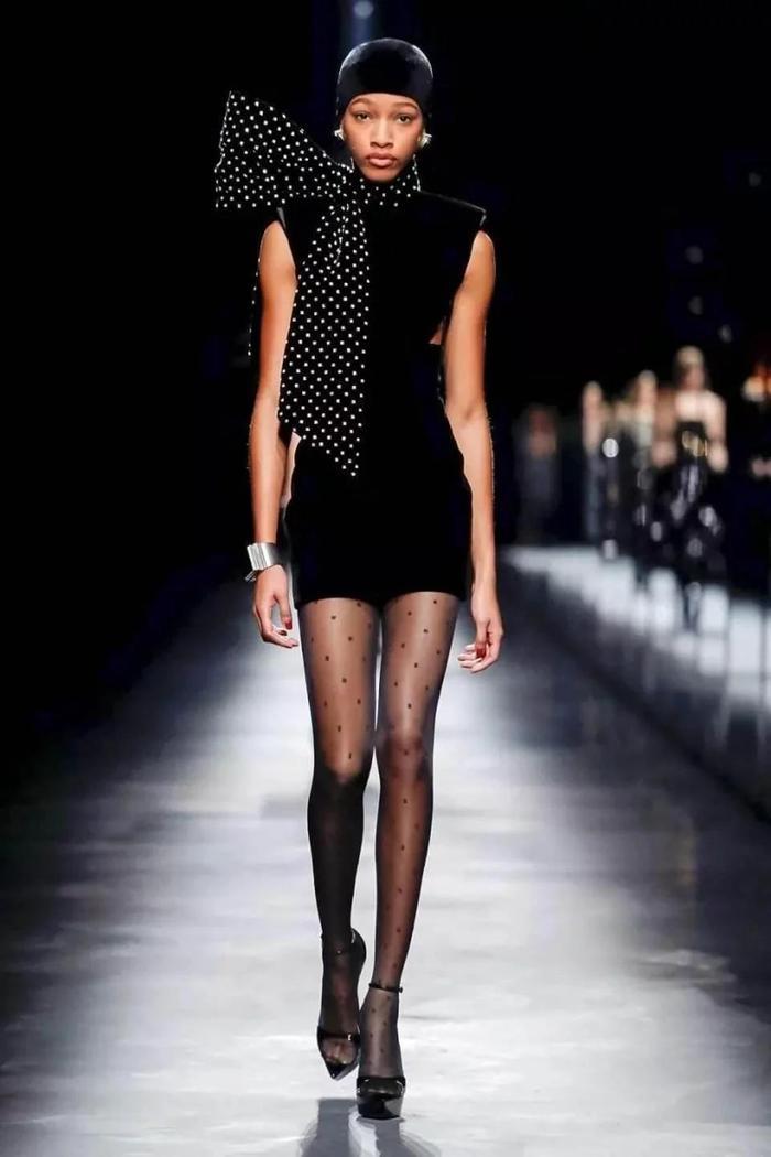 张钧甯在巴黎穿Saint Laurent的这个造型也是全靠哑光黑丝打造冷艳的性感风,丝袜的波点设计也显的非常成熟富有魅力!在衣服的选择上大家也应该尽量保持与黑丝相近的暗色调,或者是饱和度较低的颜色。也不是说要完全深色,只要做到相互呼应也是可以的!选择有不同款式的丝袜比如带波点或者是星星设计的,可以根据自身的搭配来选择~会给整体的look带来点睛之笔!