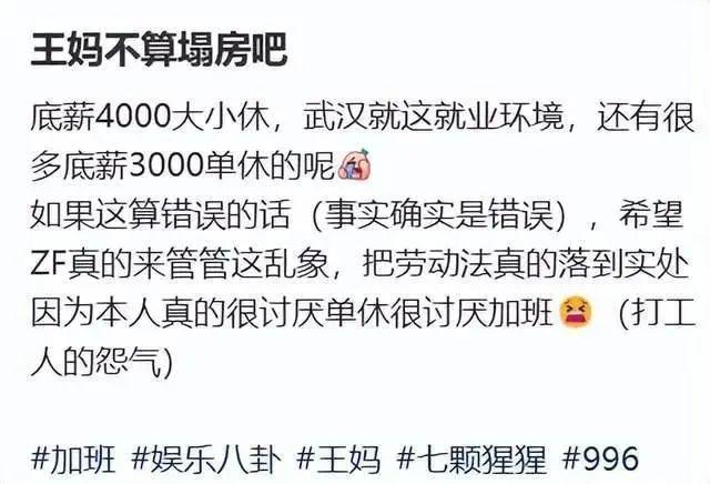大家都知道,资本家永远是最无情的。王妈这些事情放在其他资本家身上再正常不过了,在武汉比工资 4k 还少的工作有的是、大小周的公司也根本数不过来、放眼全国都很难找个不加班的工作 ……