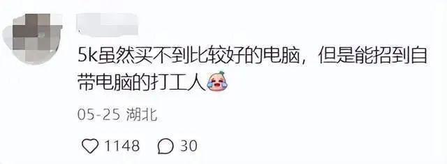 网友辣评:5k 虽然买不到比较好的电脑,但是能招到自带电脑的打工人。(牛马听麻了