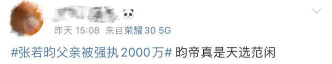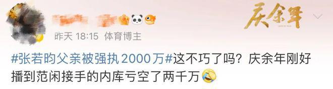 前脚电视剧刚演到范闲接手了亏空 2000 万的内库,后脚现实中就发生了张若昀被强制带大名 " 执行 "2000 万的事儿。