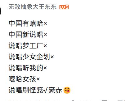 一旦被淘汰,立马火力全开化身 Diss 战神,怼天怼地怼一切,核心表达的就是导师有眼无珠,不识才华是山猪。
